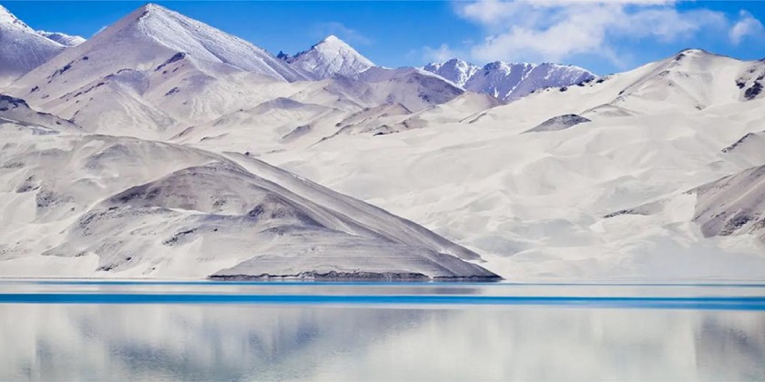 布倫口白沙湖:帕米爾高原的第一道風景線,風起沙舞,水光與天共色,蒼茫浩瀚的北國風光盡收眼底。