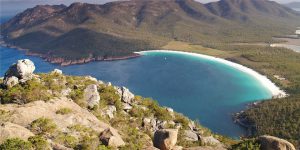 【酒杯灣】於菲瑟湼國家公園內,位於塔斯曼尼東海岸,自然風光優美瑰麗,登上半島高處,健行步道活動至最佳位置,俯瞰及獵影半月型藍色的酒杯灣,令人心醉。酒杯灣是塔斯曼尼亞島上最受遊客和當地人歡迎的度假勝地之一。美國雜誌《Outside》已將酒杯灣評為全球十大海灘。