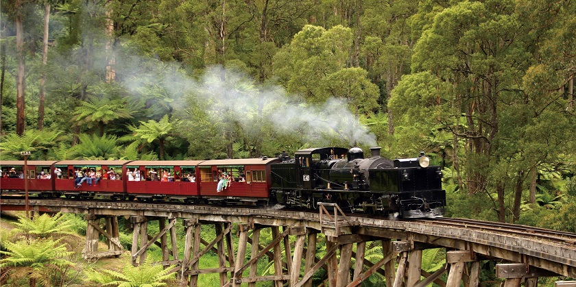 【普芬古董蒸氣火車】位於色宜人的丹頓農山谷,乘搭澳洲古老的普芬古董蒸氣火車,坐在緩緩行駛的懷舊觀光火車,沿途飽覽翠綠山林,古意盎然的湖畔小鎮,美不勝收。