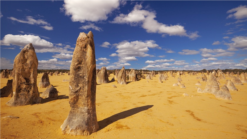 一片橫跨沙漠的奇異活化石原始森林,內有不同形態,數以千計的石灰岩柱,有些高達3公尺。在太陽照耀下,彷彿一條條黃金石柱插在沙地上,讓您樂而忘返。