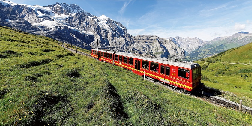 【少女峰大雪山】乘坐百年歷史齒軌火車~登上歐洲最高火車站。海拔11333英呎高之「歐洲屋脊」少女峰,山峰終年積雪,氣勢宏偉壯觀,於斯芬士瞭望台,群山薈萃,美景飽覽無遺。