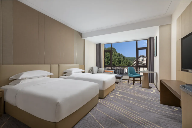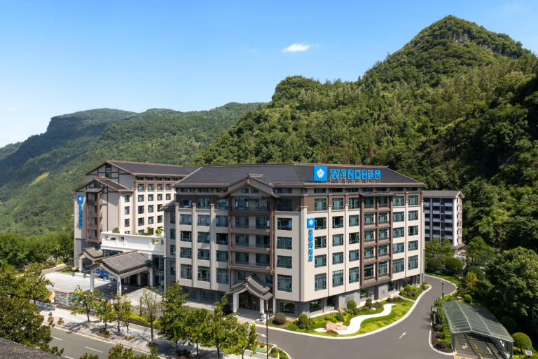 張家界瑞景鰻山溫德姆酒店坐落於武陵源核心地帶,以208間智能客房與全景落地窗,將奇峰秀色盡收眼底;酒店薈饗堂匯聚湘土珍餚,露天泳池、健身中心等多元設施齊備,為旅人打造山水間的奢適旅居體驗。