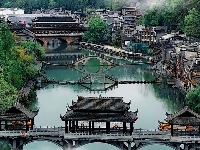 【遊覽鳳凰古城】(虹橋藝術樓、沙灣吊腳樓、跳岩、萬名塔等)後,於指定時間前往高鐵站,結束精彩行程。