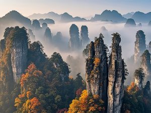 張家界國家森林公園是中國第一個國家森林公園,屬於武陵源風景名勝區的核心部分,公園以世界罕見的石英砂岩峰林地貌、原始森林和豐富的生物多樣性聞名,被譽為「縮小的仙境,放大的盆景」。張家界國家森林公園以「奇峰、幽谷、林海、雲濤」四絕聞名,是大自然鬼斧神工的傑作,兼具科學價值與美學價值,堪稱中國山水畫的現實原型。