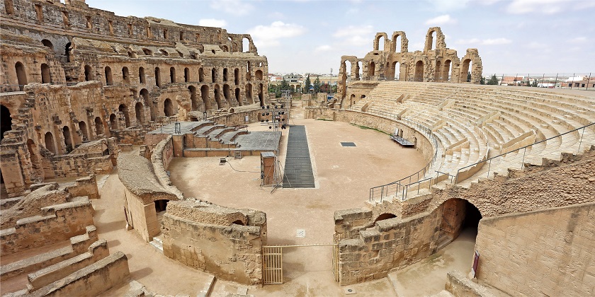 【伊利捷】此城於公元三世紀是最繁華的時期,當時共有三萬多人居住。抵達後前往伊利捷世界文化遺產之競技場,被稱為非洲的羅馬鬥獸埸,長148公尺,寬122公尺,三層高,可容三萬觀眾。此處也是當時羅馬帝國懲治異教徒及奴隸的刑場,至今仍保存得十分完整。