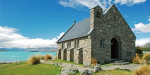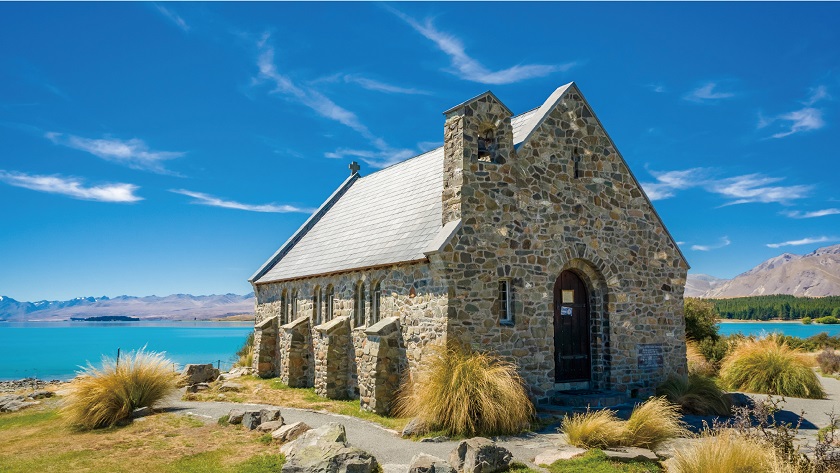【迪加寶湖小教堂】這座漂亮的石教堂位迪加寶湖畔,教堂以一隻牧羊犬的雕塑而命名,是對當地過去開發農地的先驅者的一個稱頌。