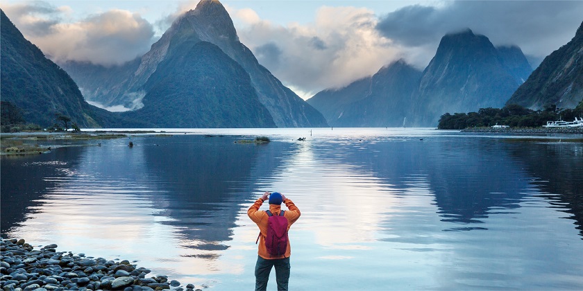 【米爾福德峽灣】此峽灣是由億萬年前冰河時期,經冰川運動侵蝕而遺留下來之奇景,沿途途經瀑布、山峰、雨林及峽谷等的景色。稍後乘遊船觀賞海豚生態,此峽灣內懸崖峭壁,奇川瀑布處處。