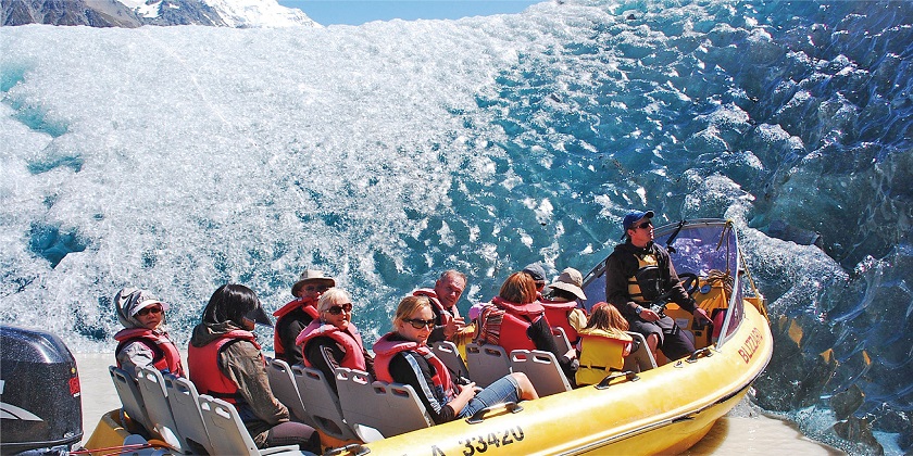 【塔斯曼冰川歷奇】觀賞長約27公里、600米深的冰川和冰山。在領隊安排下,前往乘坐特製遊覽船漫遊塔斯曼冰川終端湖,親身體驗冰川及冰山的動態環境(全程約2 . 5小時)。