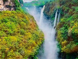馬嶺河大峽谷(含往返電梯):由於「千泉歸壑,溪水溯蝕」的作用,孕育著多姿多彩的峽谷奇觀,谷深流急,壁掛如織,銀瀑飛瀉,峽谷以地縫峰穀、群瀑橫飛、碳酸鈣壁掛。名勝古跡也非常豐富,有距今二億四千萬年中生代三疊紀時期「貴州龍」化石群,有古人類活動遺址;有漢墓群等人文景觀。