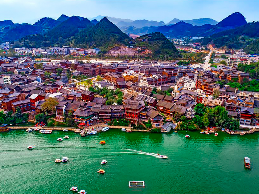 西江千戶苗寨:中國乃至全世界最大的苗族聚居村寨,寨內吊腳樓層層疊疊,順山而建,氣勢恢宏。猶如一幅靈動的苗族生活畫卷,將古老的傳統和獨特的文化展現得淋漓盡致。