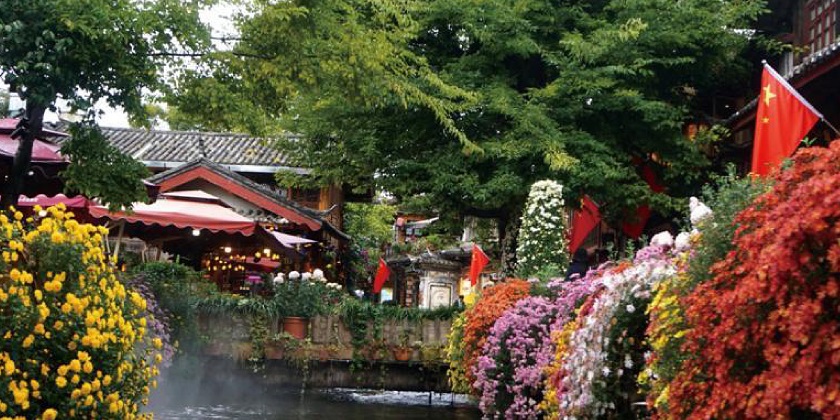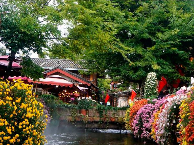 麗江古城:始建於宋末元初,以不築城牆馳名,走訪以小橋、流水、人家為特色的四方街,四方街是古城的中心廣場,廣場的形狀很像方形的知府大印,由土司取名四方街。