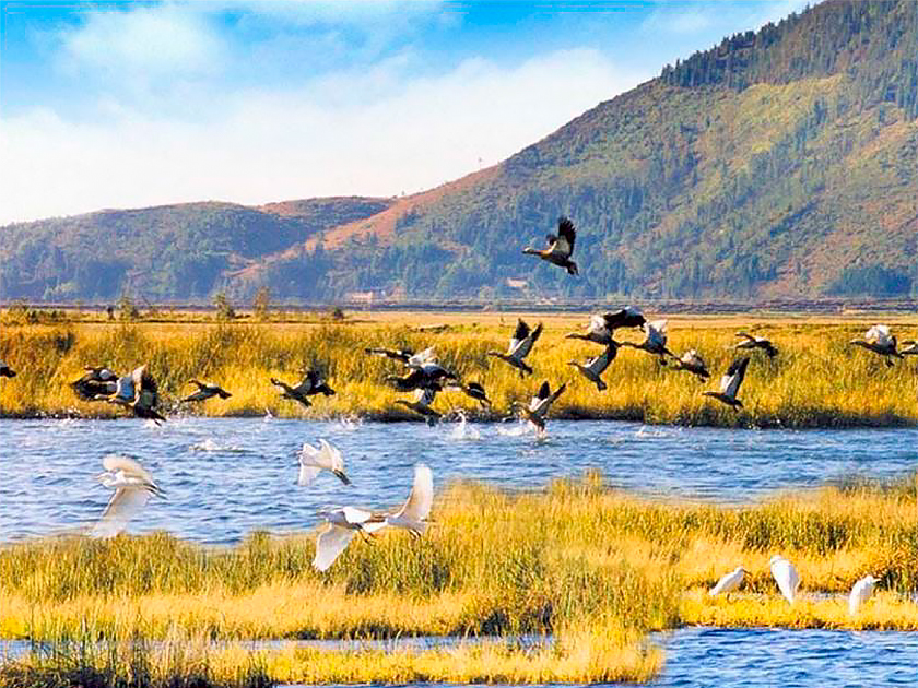 北海濕地(包遊船):由青海和北海兩個毗鄰的天然湖泊組成,是雲南省內唯一的國家級保護濕地,也是西南唯一的高原火山燕塞湖沼澤濕地,距今大約有60萬年了。