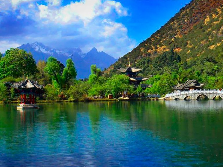 黑龍潭:又名玉泉公園,位於麗江古城北面象山腳下,始建於乾隆二年(西元一七三七年),其後乾隆六十年、光緒十八年均有重修記載。