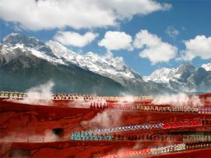 印象麗江巨型歌舞秀:它是繼桂林《印象劉三姐》之後再次推出的大型實景歌舞表演,耗資達2.5億人民幣,上篇為《雪山印象》,下篇為《古城印象》,創作人員為印象劉三姐原班人馬所組成。