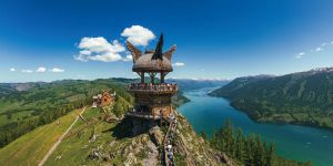 觀魚臺:是喀納斯最佳觀景點,建於海拔2030米的哈拉開特山頂上,可盡覽喀納斯湖美景。