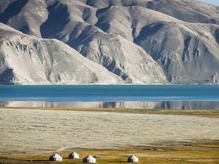 喀拉庫勒湖:位於7546米的冰山之父慕士塔格峰山腳下海拔3600米、屬高山冰蝕冰磧湖,是帕米爾高原的一顆明珠。