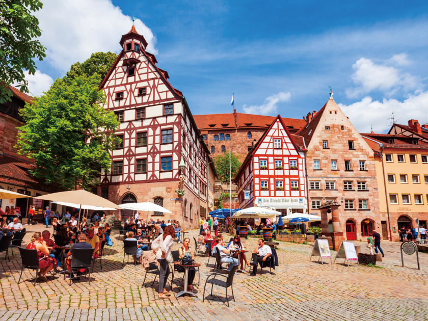 【紐倫堡】是德國南部巴伐利亞邦(Bayern/Bavaria)僅次於慕尼黑的第二大城。主廣場為紐倫堡的核心區域,不僅是聖誕市集的主要舉辦地,周邊更環繞著聖母教堂(Frauenkirche Nürnberg)、遊客中心及聖塞巴都教堂(St. Sebald / Sebalduskirche Nürnberg),堪稱紐倫堡必訪之地。廣場西北側矗立著城市最著名的噴泉——美泉(Schöner Brunnen),華麗精緻,歷史悠久。