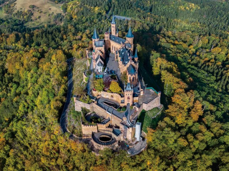 【霍亨索倫城堡】以新哥德式強烈英雄主義風格聞名,與同期新天鵝堡的浪漫唯美形成截然不同的氣質,卻同樣享譽世界。山上的第一座城堡建於11世紀初,現今所見為19世紀重建。城堡內珍藏大量普魯士歷史文物,見證普魯士王國與德意志帝國最輝煌歲月的國力與榮光,是一座令人無比震撼的歷史雄堡。