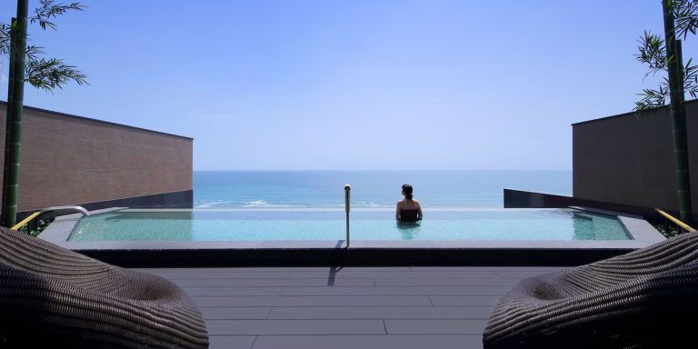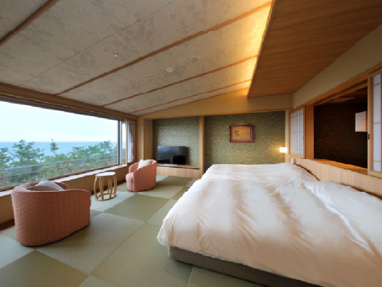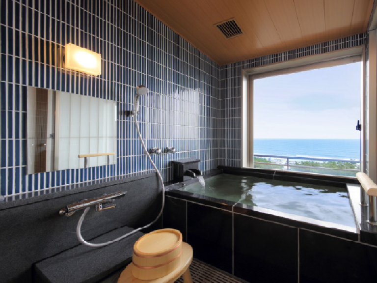 位於南房總國立公園內,旅館以優美的茶室式建築,面向鴨川的綠蔭松林而建,非常優雅。2019年4月重新裝修完成,推出全新的附設溫泉半露天風呂的和洋室,寬敞又舒適!溫泉源泉為現有的「潮騷之湯」與「渚之湯」兩種。大浴場是自家源泉的海邊溫泉「潮騷之湯」,屋頂溫泉池與新客室使用的是引自里山溫泉的「渚之湯」。
