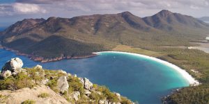 【菲瑟湼國家公園、酒杯灣】於菲瑟湼國家公園,位於塔斯曼尼東海岸,自然風光優美瑰麗,登上半島高處,健行步道活動至最佳位置,俯瞰及獵影半月型藍色的酒杯灣,令人心醉。酒杯灣是塔斯曼尼亞島上最受遊客和當地人歡迎的度假勝地之一。美國雜誌《Outside》已將酒杯灣評為全球十大海灘。