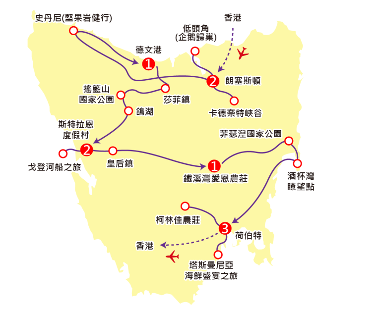 航機於是日抵達朗塞斯頓後,即展開塔斯曼尼亞之旅。