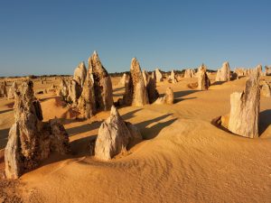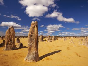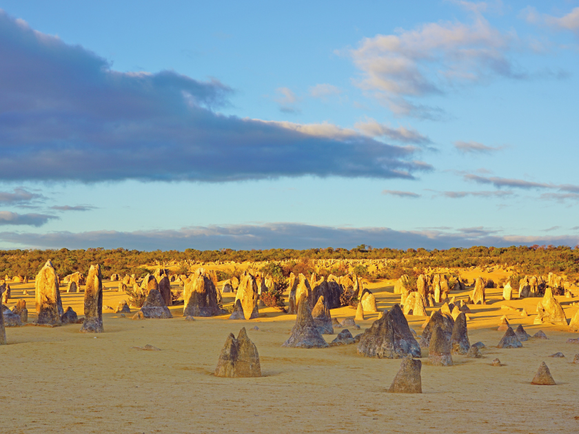坐落於西澳大利亞南邦國家公園內,這片神秘的地質奇觀由數千根石灰岩柱組成,歷經百萬年風化侵蝕形成。石柱高度可達3公尺,形態各異如外星地貌,在晨曦與夕照下呈現金黃至赭紅的奇幻色彩。公園內特有的野生袋鼠與爬行動物穿梭其間,為這片被列為世界自然地標的景區增添生機。地質學家推測這些石柱形成於遠古海底貝類沉積物,隨著海退後經風沙雕琢而成。