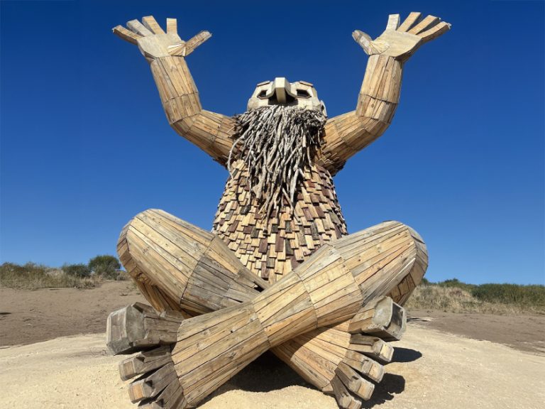 【尋找巨人之旅】曼哲拉自然公園,由丹麥藝術家ThomasDambo製作的「曼哲拉巨人」是一個支持保護皮爾地區非凡自然環境的戶外展覽。實踐頌揚自然世界的美麗、多樣性和重要性。他以巨人木雕比喻自然,木雕慈祥的眼睛及燦爛笑容代表大自然的溫柔和美麗,如若我們不善待大自然,巨人會作出反擊,變得殘忍和暴力。