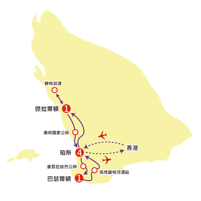 注意:如傑拉爾頓酒店未能提供團體房間,將改為入住卡爾巴里市內酒店。