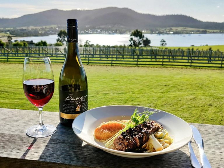 【班戈葡萄酒莊】塔斯曼尼亞乃至全世界最南端的葡萄園之一,古老的輝綠岩上排水良好的土壤,再加上朝北的朝向,為優質塔斯曼尼亞葡萄酒提供了完美的生長條件,這裡以生產優質、涼爽氣候的葡萄酒著名。特別安排一邊品嚐美酒,一邊於優美的環境下享用精美午餐。
