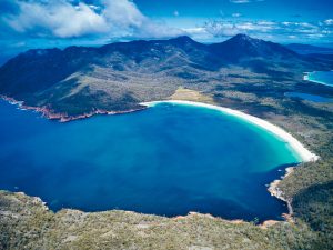 【菲瑟湼國家公園、酒杯灣】位於塔斯曼尼亞東海岸,自然風光優美瑰麗,登上半島高處,經健行步道至最佳觀景位置,可俯瞰並欣賞半月型藍色的酒杯灣,令人心醉。酒杯灣是塔斯曼尼亞島上最受遊客和當地人歡迎的度假勝地。美國雜誌《Outside》將酒杯灣評定為全球十大海灘之一。