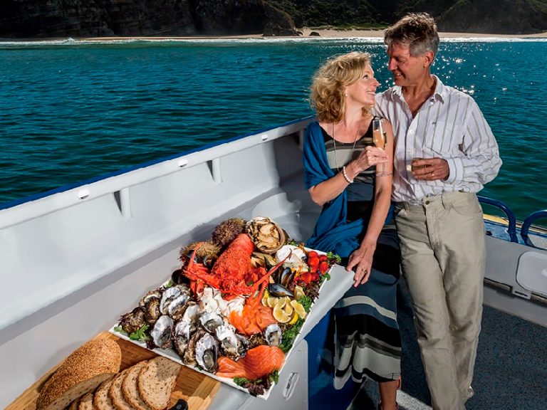 搭乘豪華遊船沿著美麗海岸線巡遊,專業廚師將為您呈獻各式海鮮美味,包括深海野生鮑魚、海膽等。船員更會以不同方式烹調青口、生蠔、岩龍蝦(Rock Lobster)及其他海鮮,搭配塔斯曼尼亞特色美酒、芝士、麵包與水果,佐餐享用新鮮又豐富的海鮮大餐。