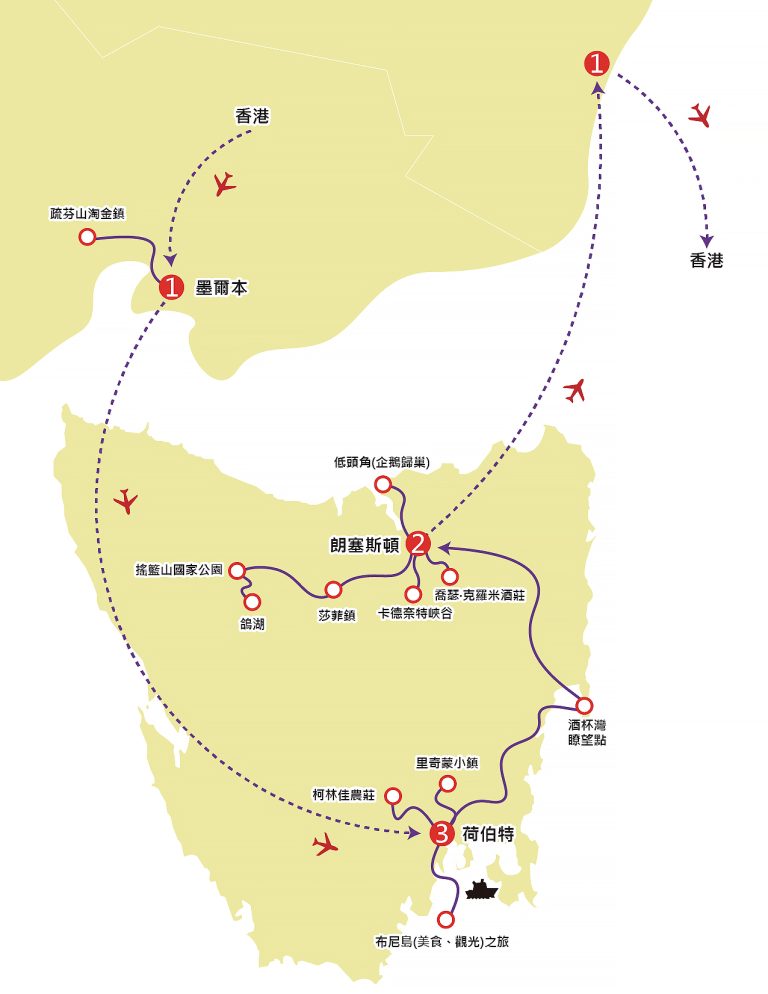 遊畢驅車前往機場,搭乘內陸航機飛往塔斯曼尼亞省~荷伯特。