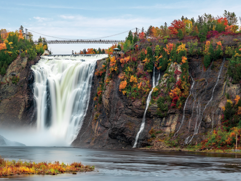 【蒙特倫西瀑布】瀑布高約83公尺,是尼加拉瀑布的1.5倍高,在此您將搭乘纜車前往山頂,沿途欣賞秋日兩岸風光。