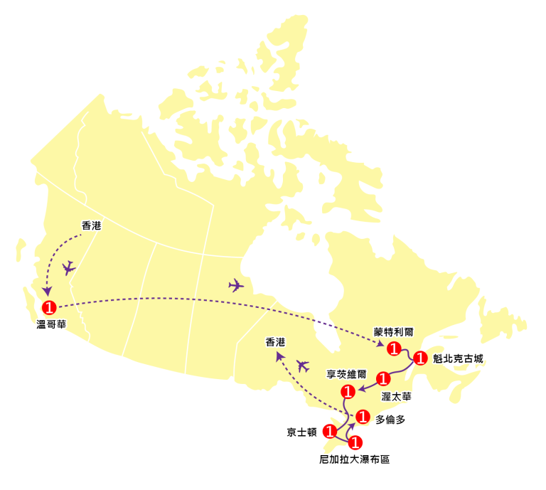 早上乘內陸航機飛往加拿大城市~蒙特利爾。抵達後隨即送返酒店休息。