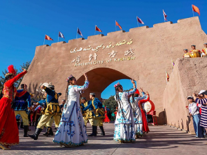 喀什古城:觀看開城儀式。它被譽為研究古西域城市的活化石,是一座有2000多年歷史的文化名城。這座開放式的景區,也是維吾爾族居民的生活區,展現了維吾爾族居民家庭生活、民族特色、傳統手工藝、風味美食等別樣風情。開城儀式更是喀什地區最為著名的新疆歌舞展示。