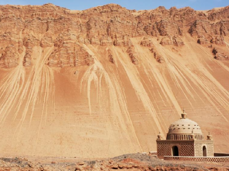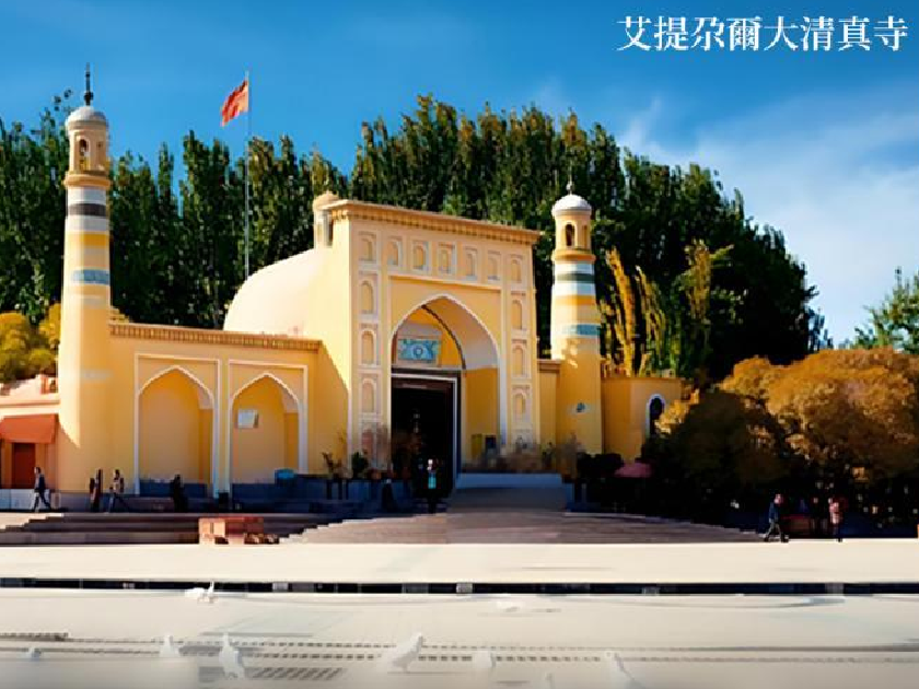 艾提尕爾清真寺:這是中國伊斯蘭教著名清真寺,始建於1442年,有著濃郁民族風格和宗教色彩的古建築群,是維吾爾族古建築藝術的典範。
