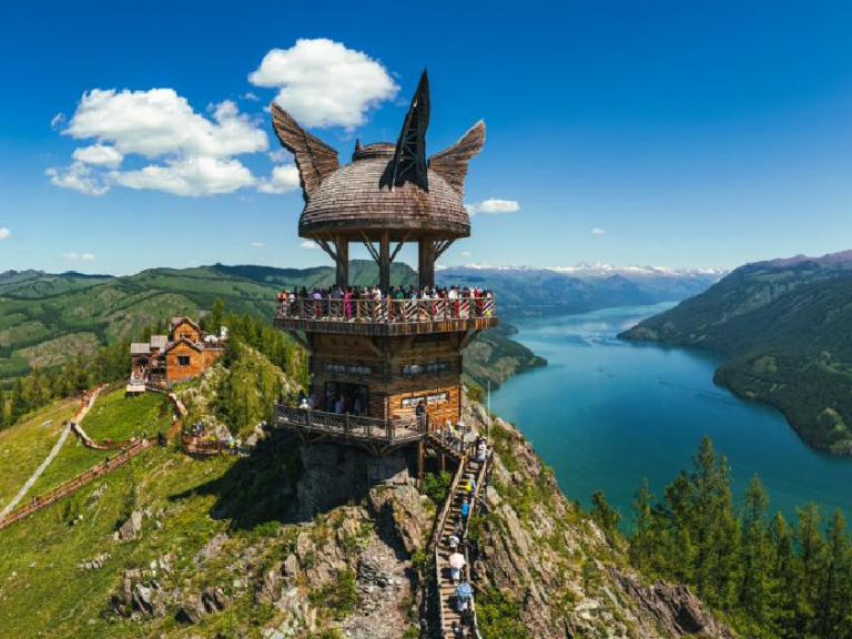 觀魚臺:早晨晨霧散去,在此可一覽喀納斯全景以及神秘的喀納斯湖。乘車返回北屯,在北屯市站登成都號前往烏魯木齊。