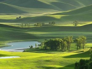 莫爾格勒河:是由湧泉匯聚而成,百轉千回,猶如草原上飄落的柔軟綢帶,是呼倫貝爾草原上一大奇觀。從空中俯瞰,河水蜿蜿蜒蜒,就像是一條蔚藍色綢帶。