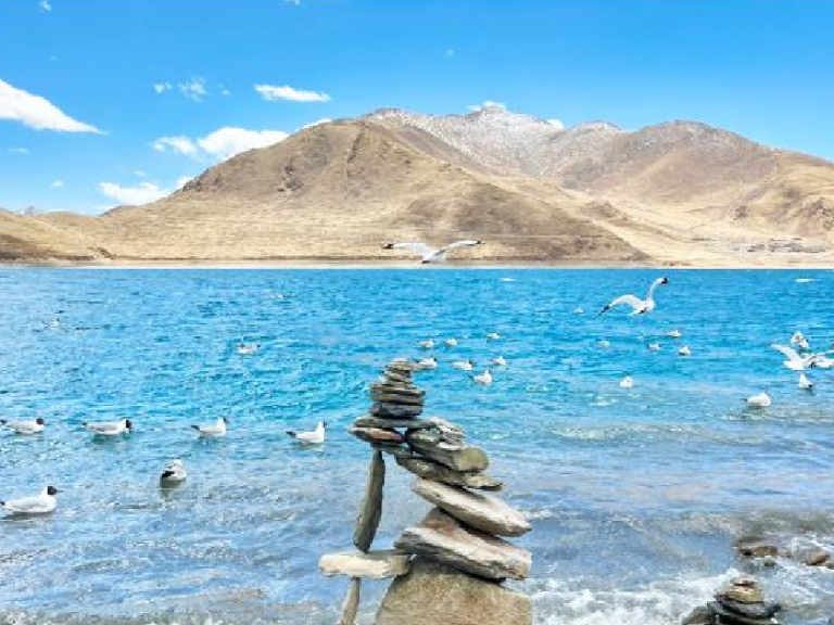 羊卓雍措:藏語意為“碧玉湖”、“天鵝池”,是西藏三大聖湖之一,位於雅魯藏布江南岸、山南浪卡子縣境內。是喜瑪拉雅山麓最大的內陸湖。湖面平靜如鏡,湖水湛藍似寶石,蜿蜒曲折地鑲嵌在高原山間。