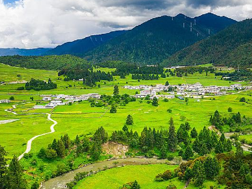 魯朗鎮:位於林芝地區巴宜區,是一個森林群山環抱的美麗小鎮,鎮上有木屋、豐富多彩的田園風光。置身群山之中,景色優美安靜。