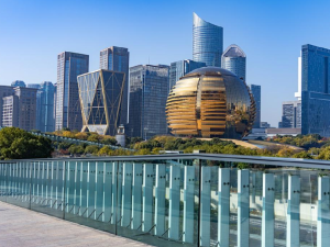 杭州錢江新城·城市陽臺(看杭州大小蓮花-奧體中心):共有有 “一主二副”3個城市陽臺,每一個陽臺就 是一個開放和充滿活力的現代城市公園,集休閑,觀 潮、遊憩、放鬆心情等多種功能為一體。