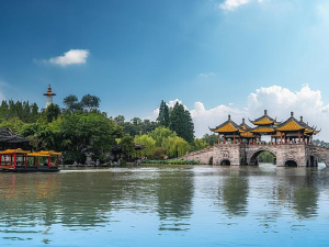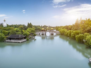 是日由翠明假期領隊陪同下,搭乘客機飛往無錫/南京後,車赴揚州遊覽大水灣公園。