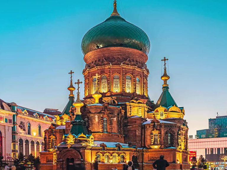 中央⼤街+聖索菲亞教堂廣場:中央⼤街是亞洲最長、中國最早的步⾏街,聖索菲亞教堂屬拜占庭式建築風格,是哈爾濱近代歐式建築的典型代表,具有極⾼的歷史研究價值、建築藝術價值和科學研究價值。哈爾濱的城市名⽚。打卡哈爾濱防洪勝利紀念塔。