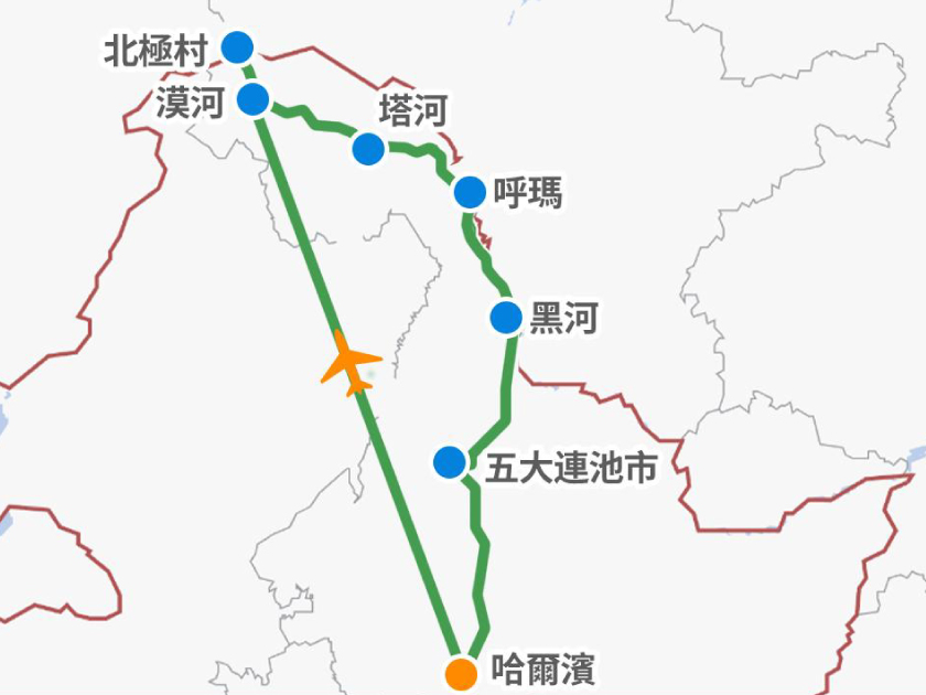 特別安排:北極村⼩交通⼀價全含︔贈送北極村明信⽚+伴⼿禮北極⽊