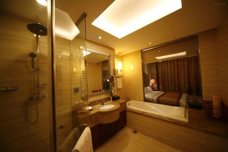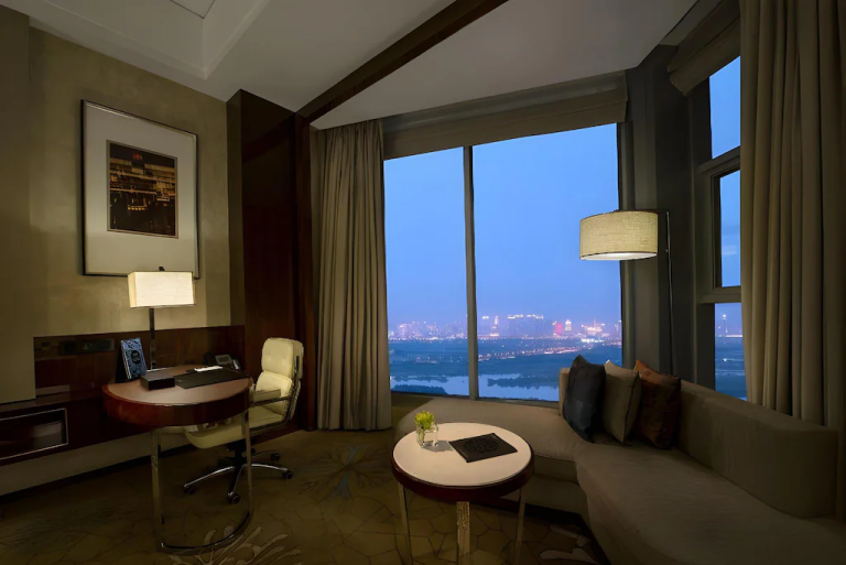 酒店屹⽴於松北區繁華商圈,周邊⾃然與⼈⽂景觀豐富,「觀」。酒店全景落地窗,為賓客帶來無與倫比的視覺享受。