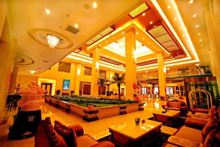 酒店坐落於北極村的核⼼區域,與民穀商業街咫尺之遙。酒店⼤堂的⾦⾊⼤廳盡顯豪華⼤氣,休息⼤廳的北極村縮略模型很有特⾊,讓遊客能提前瞭解北極村佈局。客房空間寬敞,休閒娛樂設施豐富,為遊客提供舒適的住宿環境。