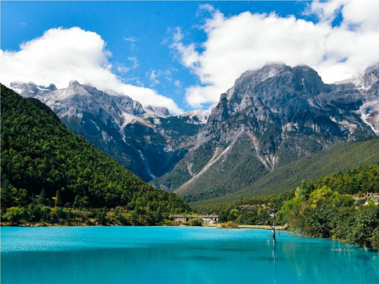 藍月谷(含電瓶車):又稱白水河,由玉龍雪山融化的冰川雪水匯成的河流,沿著山谷層疊跌躍而下,水清澈墨綠,因河床由沉積的石灰石碎塊組成,呈灰白色,清泉流過,遠看就像一條白色的河,因此而得名。