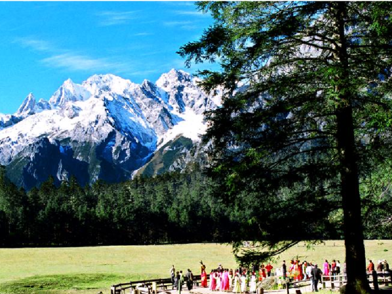 玉龍雪山(含雲杉坪纜車上下+印象麗江秀演出)(雲杉坪海拔3240米):雪山如玉屏,高聳入雲;從這裡望去,玉龍雪山的十三座雪峰連綿不絕,能讓遊客欣賞到雪山的整體輪廓和雄偉氣勢,是拍攝雪山全景的絕佳機位。