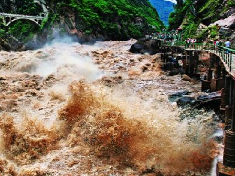 虎跳峽景區(含來回程觀光電梯):景區南岸為玉龍雪山,北岸為哈巴雪山。受兩岸高山的緊緊束縛,江流入峽後寬僅50多米,最窄處虎豹一躍即過,故名虎跳峽。峽谷坡陡峭,垂直高差3900多米,是世界上最深的峽谷之一。