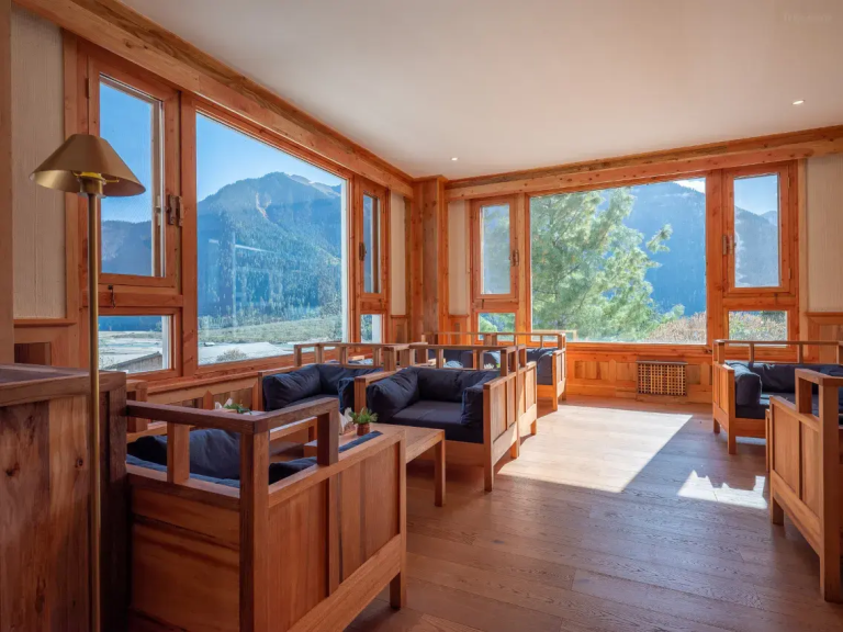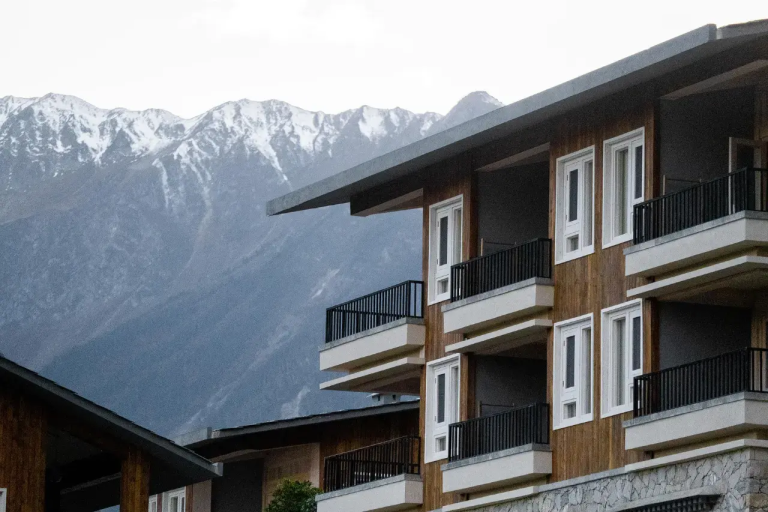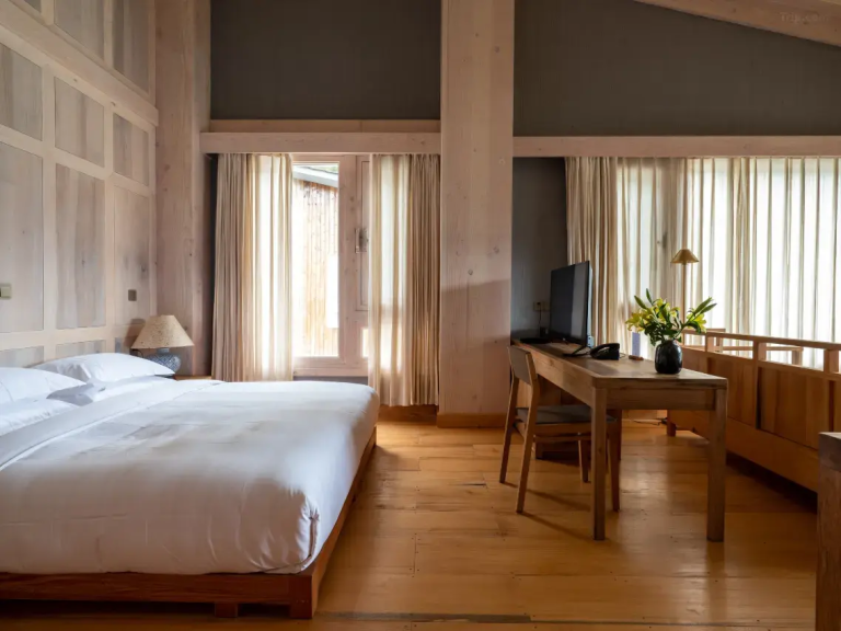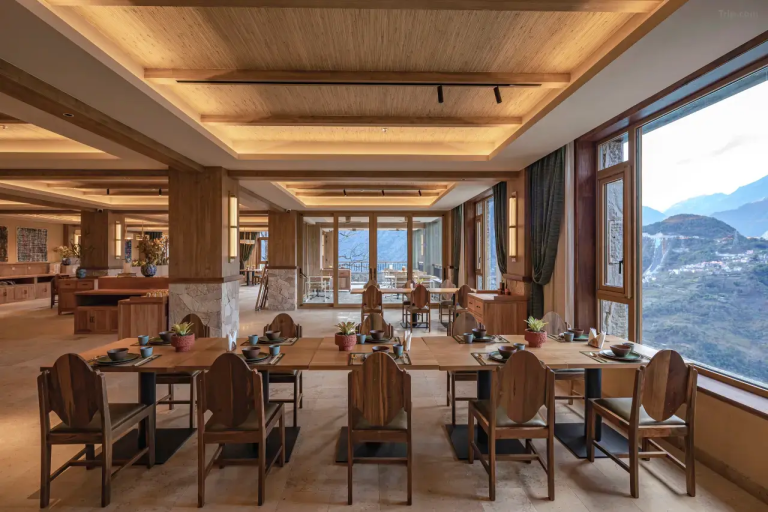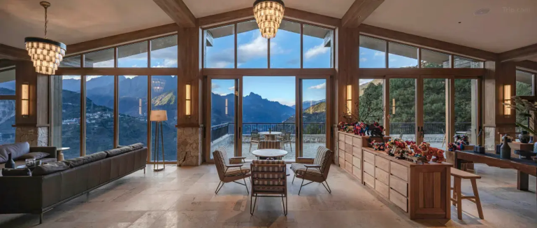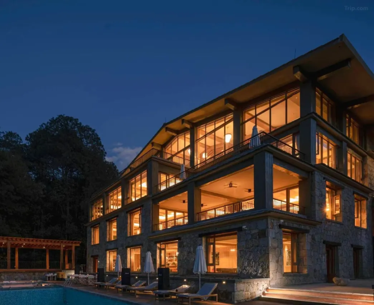 波密林卡依山而建,在森林間錯落有致,與自然融為一體。這要歸功於建築師山山採用了地毯式建築群落的肌理來設計和構建整個酒店。根據山勢高差,建築體猶如“地毯式”散落分佈,並由階梯式景觀臺地串聯建築單體的內外,以呈現整體、連續的遊山感知和入戶入畫的體驗。